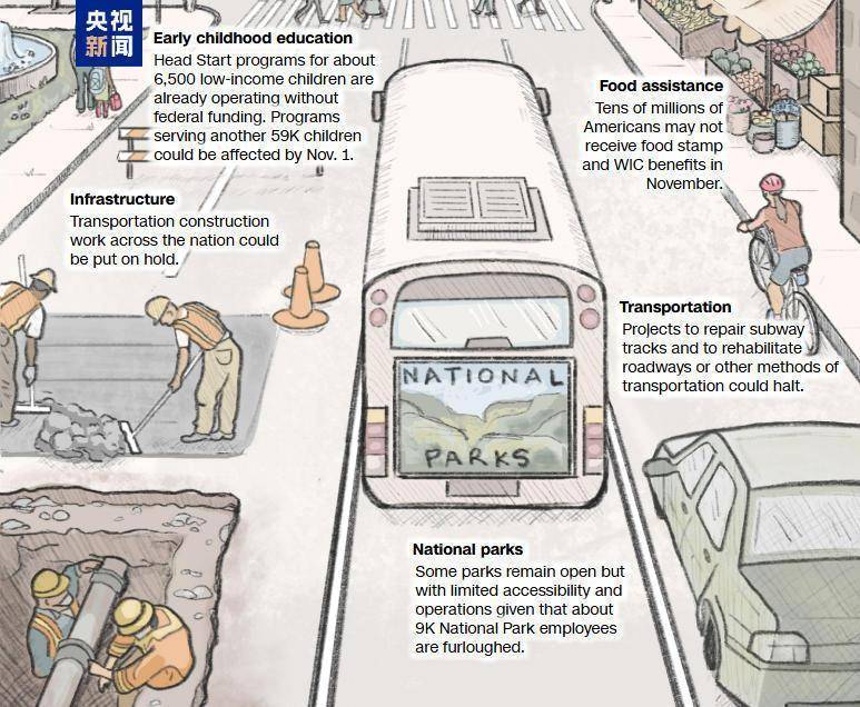 有好意思国媒体发布了一张图,解读政府“停摆”给好意思国社会生存带来的9大项影响。