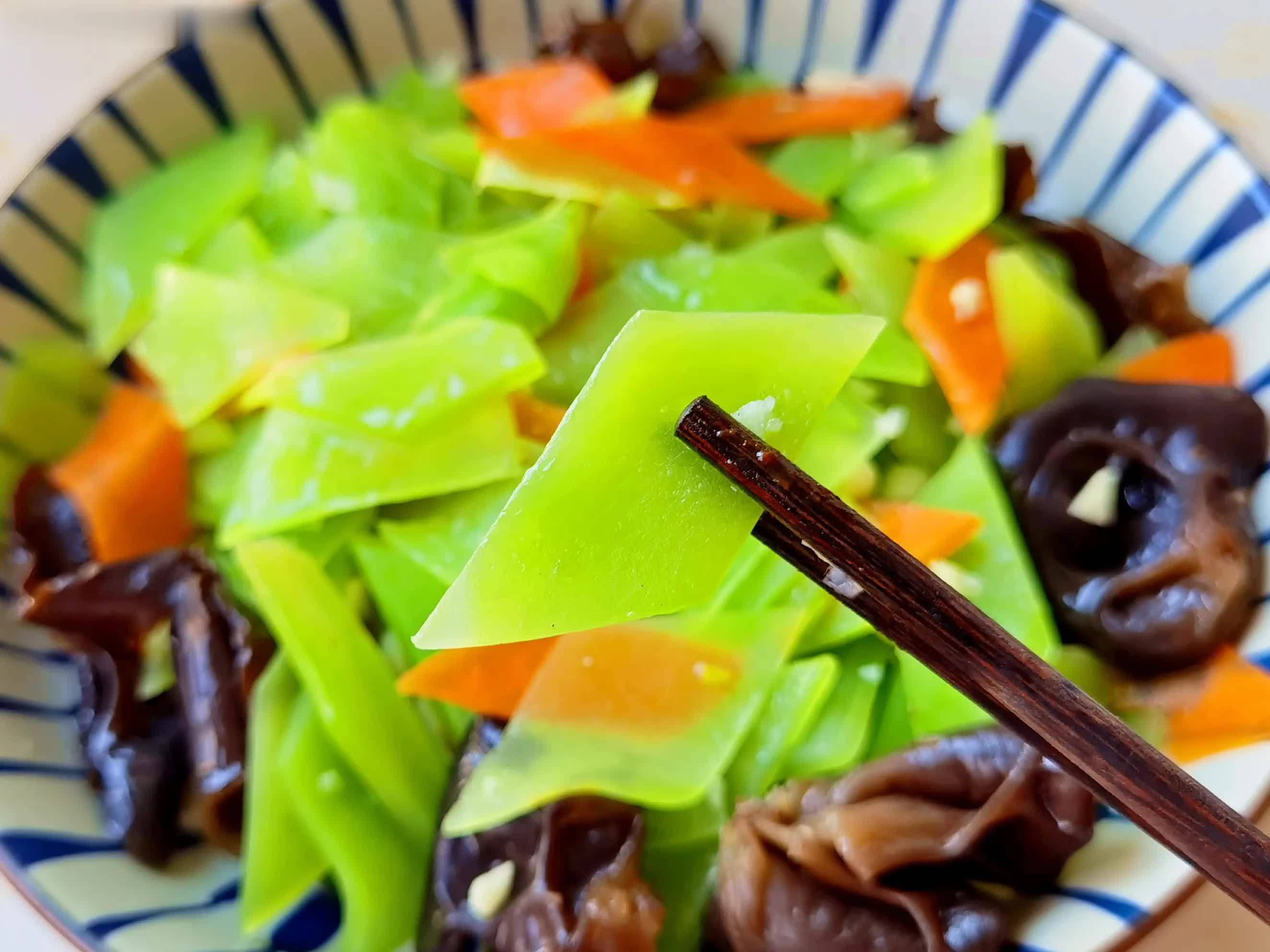 莴笋水分足、纤维多,咬一口脆生生的。它嚼起来咯吱咯吱的,能促进肠谈蠕动,把肚子里积存的东西顺一顺,吃完嗅觉周身通透。